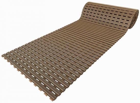 巻き取り式の塩ビのスノコです。丸めて収納できます。比較的熱さを感じにくく爽やかな足触りの巻き取りスノコです。サウナなどの床に適しています。 コンパクトに巻き込み移動ができるので、床面の掃除も簡単でメンテナンス性に優れています。 つなぎ目の軟質部分は簡単にカットできるので、長さ調整が簡単にできます。滑りにくい材質でできていますので、安全性も確保できます。価格も卸売価格です。業務用サウナ、シャワールームなどの床に置き敷きで使われます。